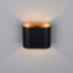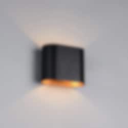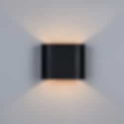 Lampan monteras på väggen och är avsedd för fast installation. Den sprider ljuset uppåt och nedåt och skapar en mild och stämningsfull belysning utan att ta över rummet.