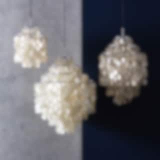 - Fun: En spektakulär lampserie från 1964 där tunna skivor av snäckskal eller metall hänger i kedjor. När lampan tänds skapas ett unikt ljusspel och ett levande uttryck som gör varje exemplar till ett konstnärligt statement.