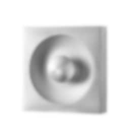 Den stora kvadratiska lampan har en cirkulär fördjupning i mitten, som håller ljuskällan, som sedan döljs under en halvklotformad skärm som bryter och mjukar upp ljuset och förvisar bländningen. Det Panton skapade med SPIEGEL var ett arkitektoniskt och skulpturellt konstverk som fungerar som en lampa med ett vackert och mjukt omgivande ljus.