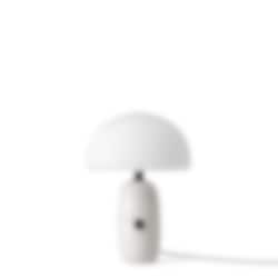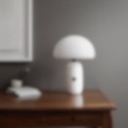 Den lilla bordslampan Vipp Sculpture är idealisk som dekorativ belysning, lämplig för vardagsrummet eller sovrummet. En hållbar LED-enhet är gömd under en trelagers skärm av opalglas, vilket ger en mysig belysning. Den runda cylinderbasen av antingen grå eller vit marmor har en dimmer och en tygklädd sladd.
