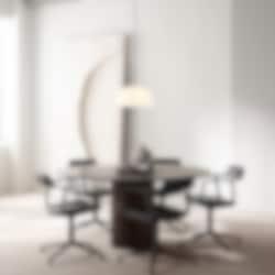 Konstruerade detaljer och ett mjukt diffust ljus genom tre lager av munblåst glas förmedlar en sofistikerad belysning till sociala sammankomster runt bordet.