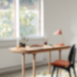 Ambience har en fantastisk charmig design med en sned asymmetrisk form. Originalet formgavs redan på 50-talet av Svend Aage Holm-Sørensen och var en banbrytande era för belysningsdesign. Den ger ett vackert mjukt ljus och passar perfekt som skrivbordslampa eller sänglampa.