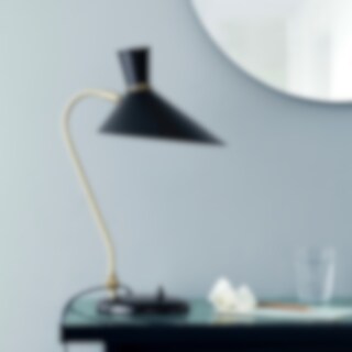 Bloom är en liten charmig lampa med stor personlighet och är en av Svend Aage Holm-Sørensens mest ikoniska lampa. Den har en fin kombination av lekfullhet och skarpa linjer som gör den till en vacker detalj på skrivbordet eller i fönstret. Dom karakteristiska hålen i skärmen ger ett fint allmänljus och värme i rummet.