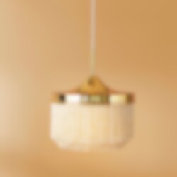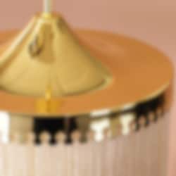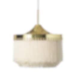Design: Hans-Agne Jakobsson 1960. Fringe formgavs redan på 60-talet och är idag en designklassiker i varm nordisk stil. Den ger ett mjukt sken genom flera lager med fransar som faller likt en kjol runt ljuskällan. Gjord i massiv polerad mässing som tillför elegans och blir en fantastisk balans med textilen. Fin att placera i hemmets alla rum.
