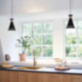 Cone har en klassisk 50-tals design med charm, finess och elegant mässingsdetalj. Dom fina ljusspåren i skärmen ger ett fint allmänljus och värme i rummet. Fin att pendla i ett fönster över köksbordet eller köksön, gärna i grupp.