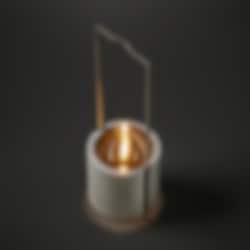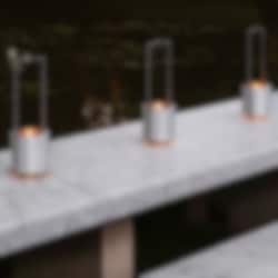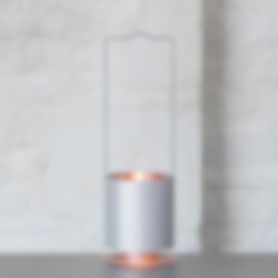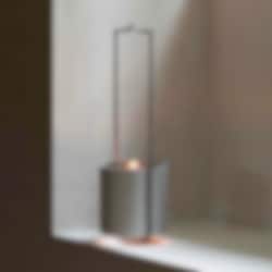 Design: John Pawson 2018.Wästberg har i samarbete med formgivarna Ilse Crawford, David Chipperfield, Jasper Morrison och John Pawson skapat kollektionen Holocene som en hyllning för ursprungliga ljuset, elden. Holocene No. 4 är tillverkad i rostfritt stål och aluminium, med matt yttre och en polerad inre kärna för att reflektera och förstärka flamma. Lyktan är för inomhus- och utomhusbruk. Fin ensam eller i grupp, på matbordet eller en fönsterbrädan, på golvet eller hänga på en vägg.