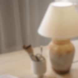 Välj Basic wide till din lampfot för en tidlös och stilren känsla. Lampskärmen är prisvärd och tillverkad för hand i ett vitt, sobert linnetyg. Skärmens insida är också vit, vilket ger ett bra allmänljus och där du behöver ha lite extra läsljus, som till exempel i sovrummet eller på skrivbordet.