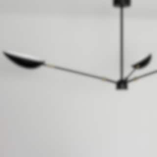 En elegant taklampa med retro-look och eleganta detaljer i mässing. Dom tre skärmarna går att rikta och kan både ge ett bra läsljus eller ett mer dämpat, stämningsfullt ljus som gör att lampan är lättplacerad i hemmets alla rum.
